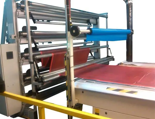 The StaticElastic is placed across the conveyer, under the media, and grounded to the metal of the machine as shown above. The static is removed from both sides of the substrate.